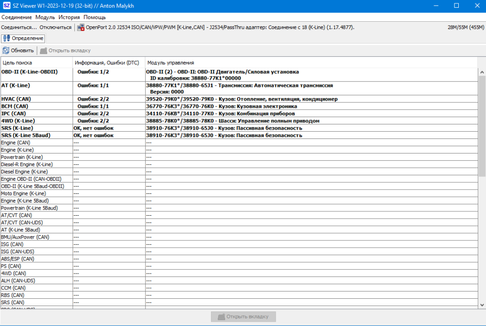 Сузуки гратд витара, 2013г. 2.0 л, АКПП ЭБУ в прикреплённом файле. Программа не конектится с машиной. log_2024.09.02.txt